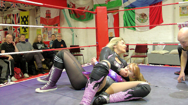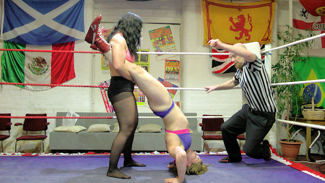 An eagerly looked forward to match with the stunning newcomer Aurora taking on wrestling factory sensation Eva.