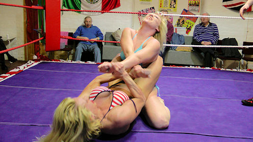 Axa, in a vibrant pale blue bikini and show debutant: Karolina,
