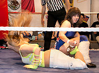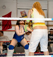 Here she faces the powerful Lucy Clayden who has a huge height and weight advantage.