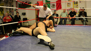 Crowd favourite Venus entered the ring in a superb two-piece black outfit and boots.Equally stunning was the Londoner Inferno