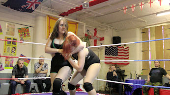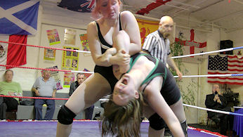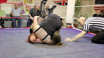 Next up, another Pro. style match. Bette Noirre taking on Gail Jillette, both in black swimsuit/leotards.