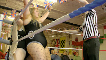 Viper using her strength to apply a crotch-hold and slam to Ms.
