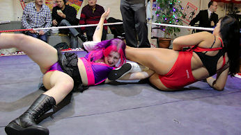 A scissors hold was applied, quickly reversed by April who then