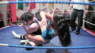 April in a black outfit sporting a new haircut, bravely took on the lady most of us come along to see; the one and only Pippa L'Vinn.