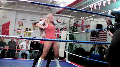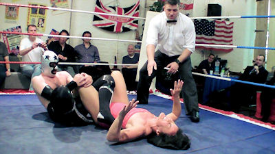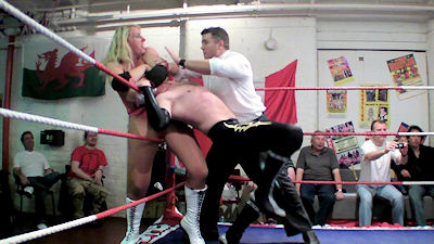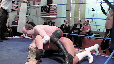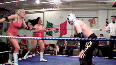 Their male opponents - including a masked wrestler - received